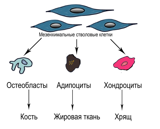 Они называются мезенхимальными стволовыми клетками и могут развиваться в различные типы тканей. Для этого процесса есть специальный термин – биологическая дифференциация.